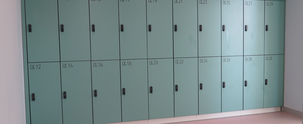 - Spinde mit RFID- oder PIN-Code-Bedienung, die kontaktlos funktionieren.