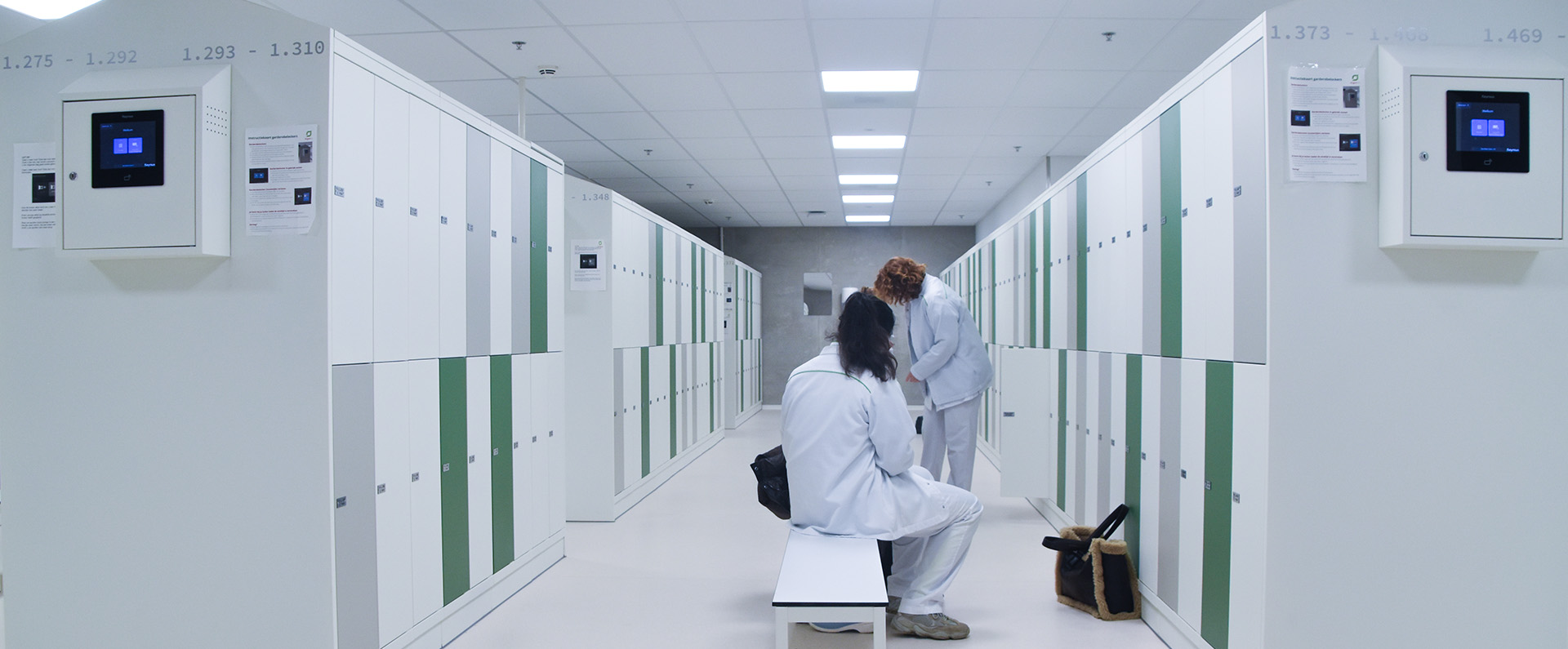 Fully customised for your location and equipped with modern technology, various lock types, API integrations and remote management. Smart compartment layouts, separation of personal and work clothing, and mechanical ventilation improve hygiene and save space. No more lost keys, no confusion between fixed and flexible staff. In short: less administration, more ease of use and a clean, organised changing room.